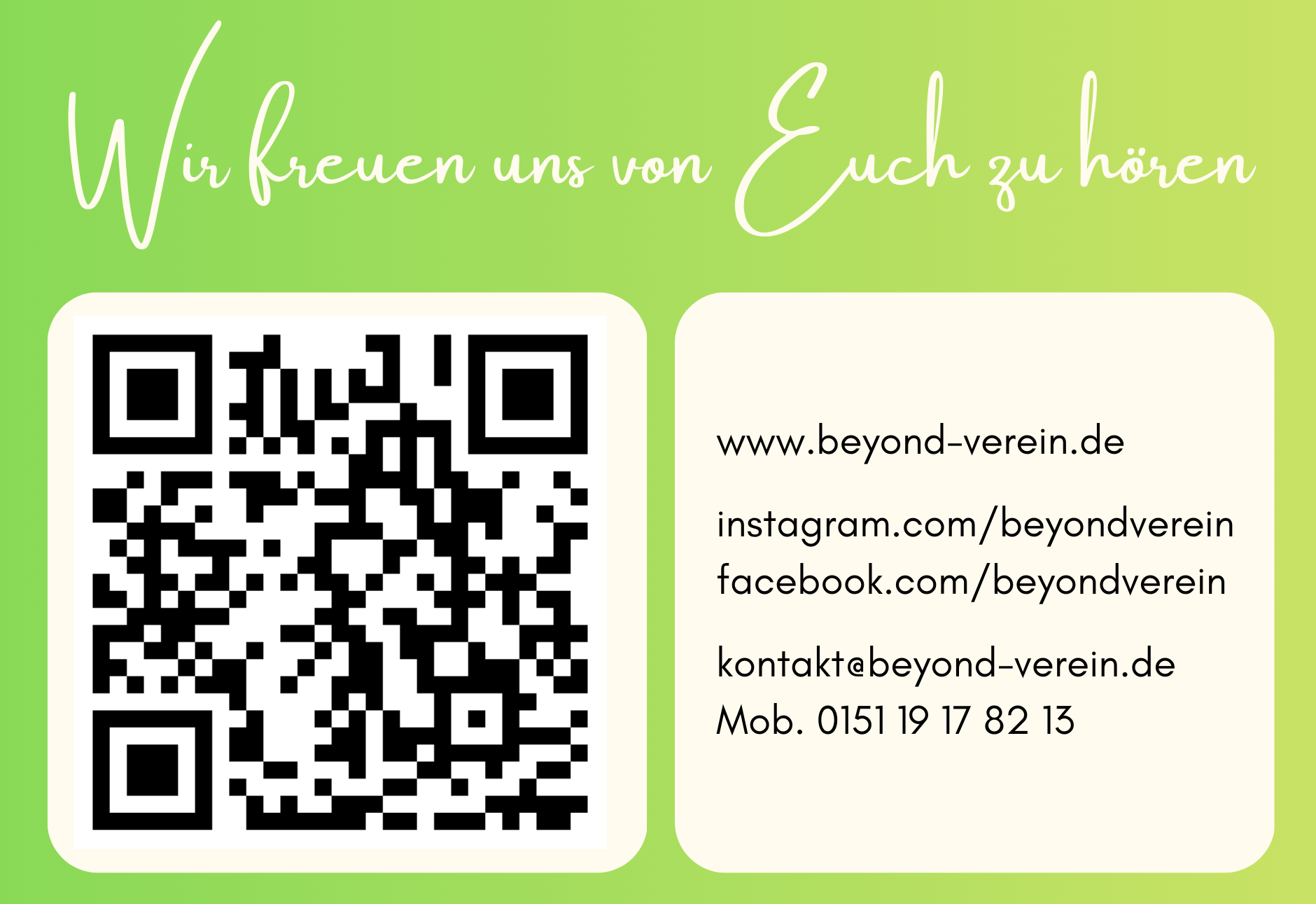 Hier können Sie Faltkarten mit QR Codes ausdrucken. Diese Codes bringen Interessierte direkt zur Website, Facebook, Instagram oder zur Spendenseite.