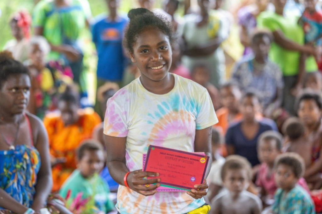 Unsere Partner, die Rays of Light Foundation(ROL) in Papua-Neuguinea und die Foundation for the Betterment of Society(FBS in Vanuatu, arbeiten mit dem Programm für Gemeindegrundschulen. Dieses Programm ermöglicht Kindern den Zugang zu wertvoller Bildung vor Ort.
